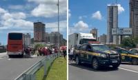 Imagens que circulam nas redes sociais mostram a confusão no meio da rodovia.