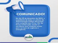 A prefeitura de Seara informa que fará turno único nesta sexta-feira, dia 29 de dezembro.