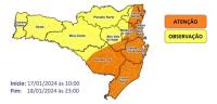 Nesta quarta-feira (17) e quinta-feira (18), o processo de formação de uma baixa pressão favorece temporais acompanhados de raios e rajadas de vento na maior parte do estado de Santa Catarina, destacando as áreas do Grande Oeste ao norte do estado.