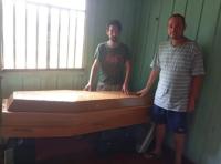 Além da aquisição incomum, ele ainda fez questão de que o caixão fosse entregue na casa dele. O momento foi registrado em vídeo por familiares. |
