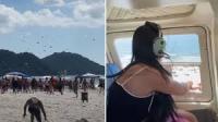 A influenciadora jogou cerca de R$ 10 mil pela janela de um helicóptero em direção aos banhistas. Em notas de R$ 20, 50 e 100, a ação foi divulgada nas redes sociais dela e causou um tumulto entre as pessoas na praia.