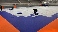 O piso modular esportivo indoor, popularmente conhecido como piso emborrachado, está sendo instalado no Carecão em Seara, nesta quarta-feira, 3. O material chegou nesta terça-feira, 2, e a empresa responsável já iniciou a montagem.