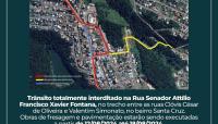 A Rua Senador Atílio Francisco Xavier Fontana, uma das principais vias de acesso em Concórdia, será totalmente interditada ao trânsito a partir ddesta segunda-feira (12) até o dia 18 de agosto. O bloqueio ocorrerá no trecho entre as ruas Clóvis César de Oliveira e Valentim Simonato, no bairro Santa Cruz, devido às obras de fresagem e pavimentação que serão realizadas no local.