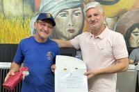Sérgio agiu de forma heroica no salvamento de duas idosas prestes a serem arrastadas pela correnteza no Rio dos Queimados devido à forte chuva no último dia 06 de novembro. Na homenagem Ferri também presenteou Sérgio com um celular, pois ele havia perdido durante o acontecimento. |