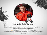 Hoje nos despedimos de um dos nossos com o coração em silêncio e os olhos marejados: Anderson Roberto Correia, nascido em 1989, esposo da Eliz e pai dedicado do Anthony, do Victor e do Rafael.