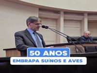A homenagem, proposta pelo deputado Altair Silva (PP), presidente da Comissão de Agricultura e Desenvolvimento Rural, reuniu ex-dirigentes, pesquisadores e lideranças do setor produtivo. A Embrapa Suínos e Aves, criada em 1975, é referência mundial em pesquisa aplicada à suinocultura e à avicultura, com avanços em melhoramento genético, sanidade, sustentabilidade e eficiência produtiva. |